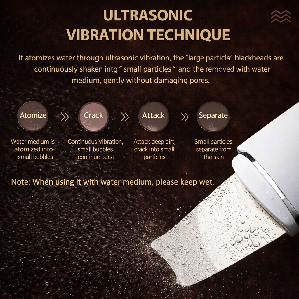 Using high-frequency ultrasonic vibrations (24 kHz), this device helps lift impurities from the skin while supporting healthier-looking skin with every use.